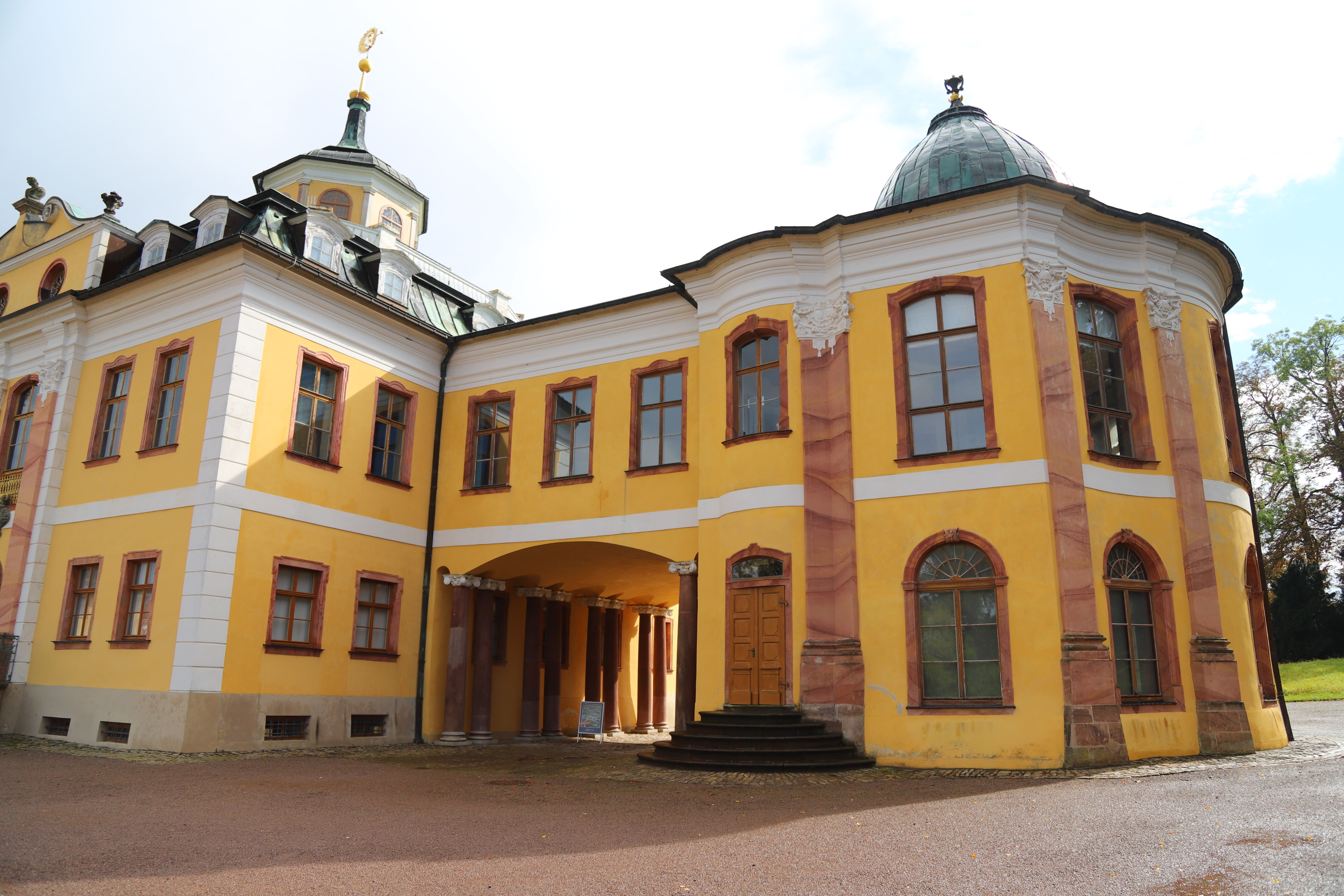 Unser Guide bringt uns pünktlich zur Bushaltestelle, wo wir in die Linie 1 Richtung Schloss Belvedere einsteigen. Das barocke Schloss liegt auf einem Hügel südlich von Weimar und ist von einem weitläufigen Park umgeben. Im angrenzenden Café stärken wir uns und entgehen einem kurzen, aber heftigen Regenschauer.