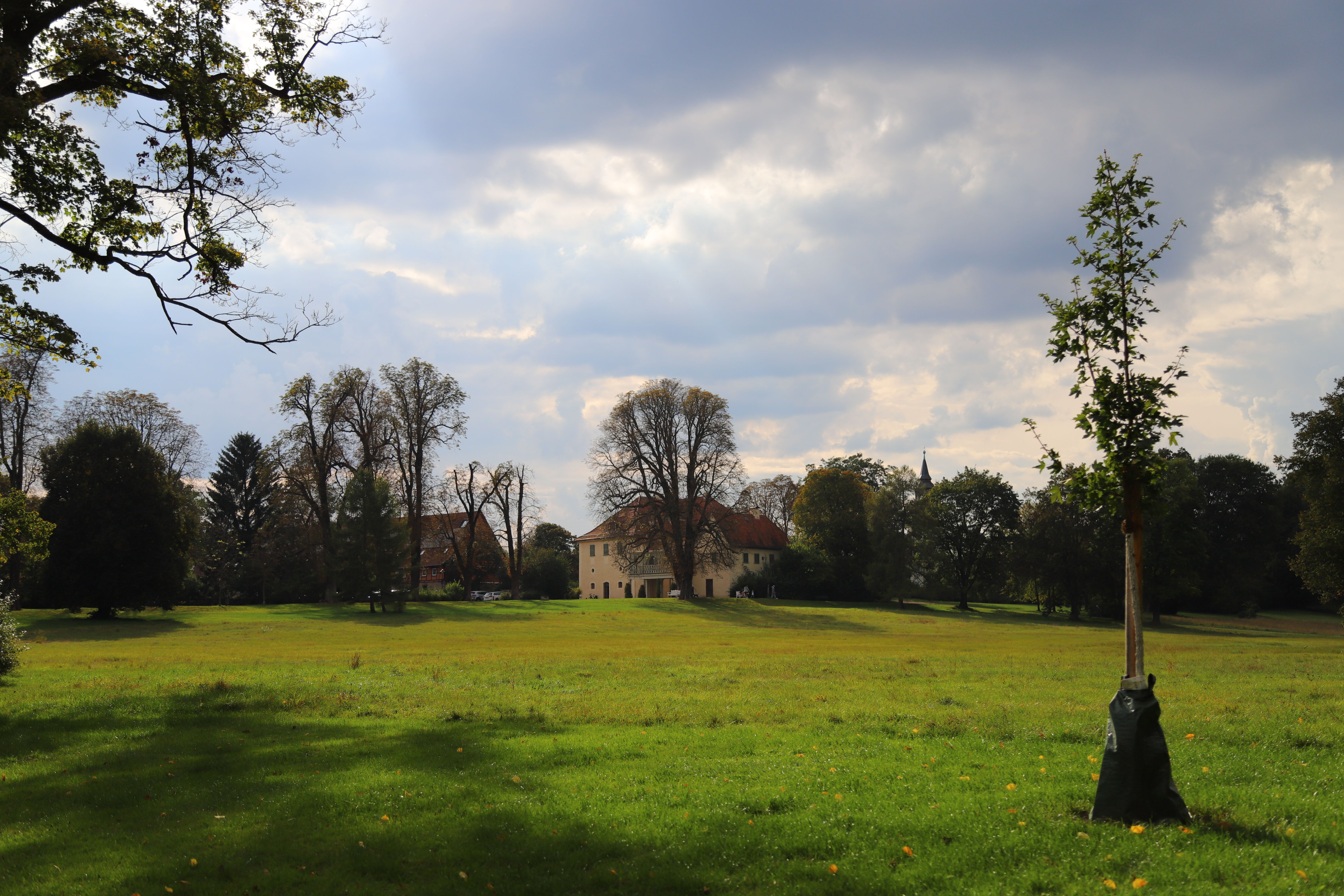Unser Guide bringt uns pünktlich zur Bushaltestelle, wo wir in die Linie 1 Richtung Schloss Belvedere einsteigen. Das barocke Schloss liegt auf einem Hügel südlich von Weimar und ist von einem weitläufigen Park umgeben. Im angrenzenden Café stärken wir uns und entgehen einem kurzen, aber heftigen Regenschauer.